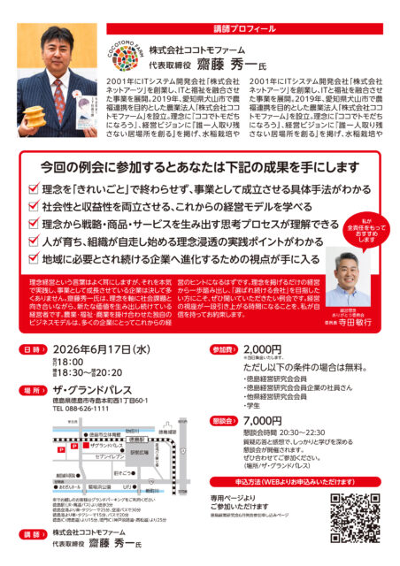 理念を掲げるだけの経営から一歩踏み出し、「選ばれ続ける会社」を目指したい方にこそ、ぜひ聞いていただきたい例会です。